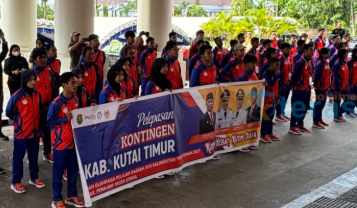 Acara pelepasan ditandai dengan penyerahan bendera kontingen dari Wakil Bupati kepada Kepala Dispora Kutim, Basuki Isnawan.